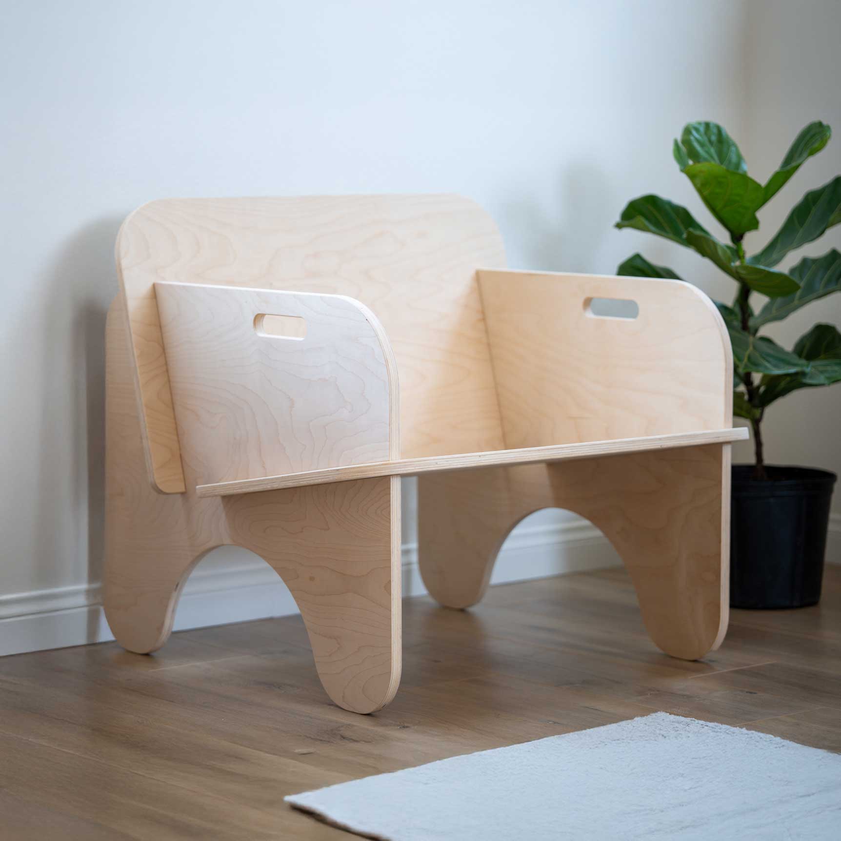 The UNFNSHED Lounge Chair is a bold, modern statement piece crafted from Baltic birch plywood. The wide stance and reclined angle create a comfortable seat for reading, lounging, and conversation. Like all UNFNSHED furniture, it assembles with zero tools — the panels interlock and lock into place.